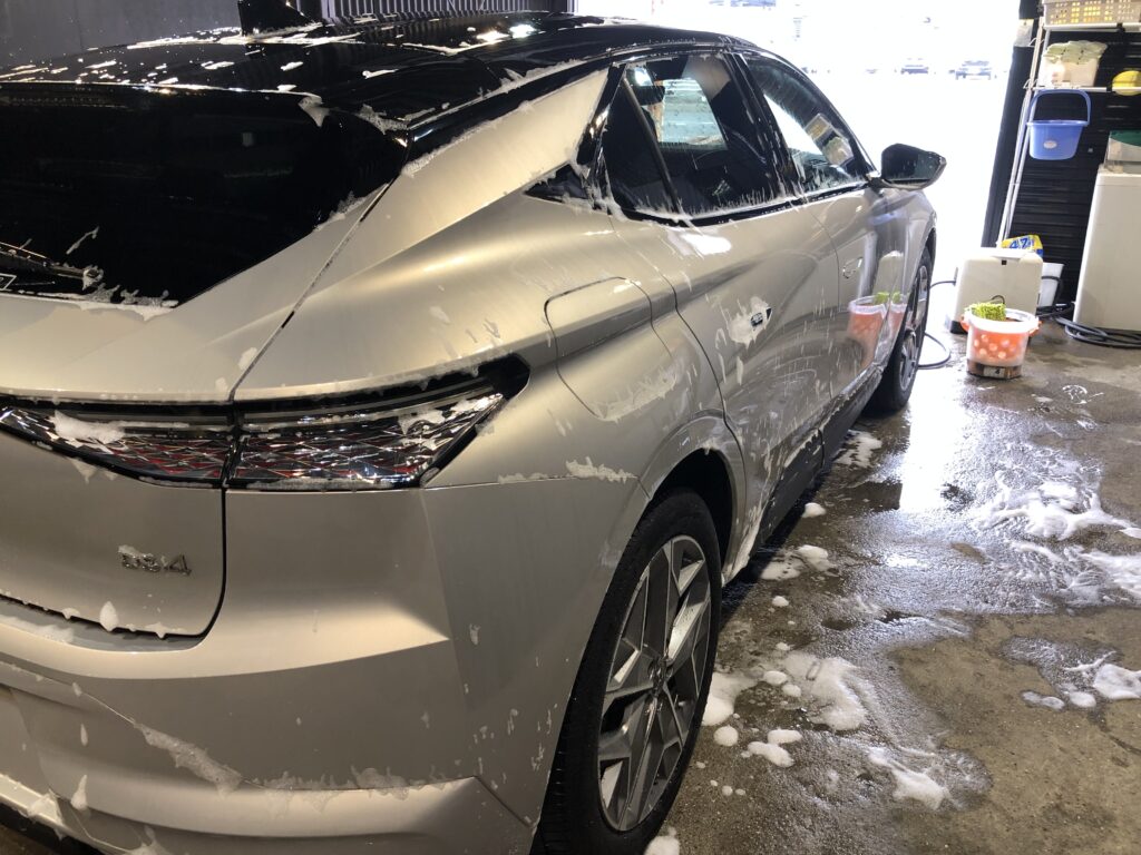 雨の中ご来店ありがとうございました☔️水垢汚れが全体的に目立っておりましたが、ロイヤルコーティング2層のおかげで汚れもスッと除去でき、弾きも抜群ッ✨✨